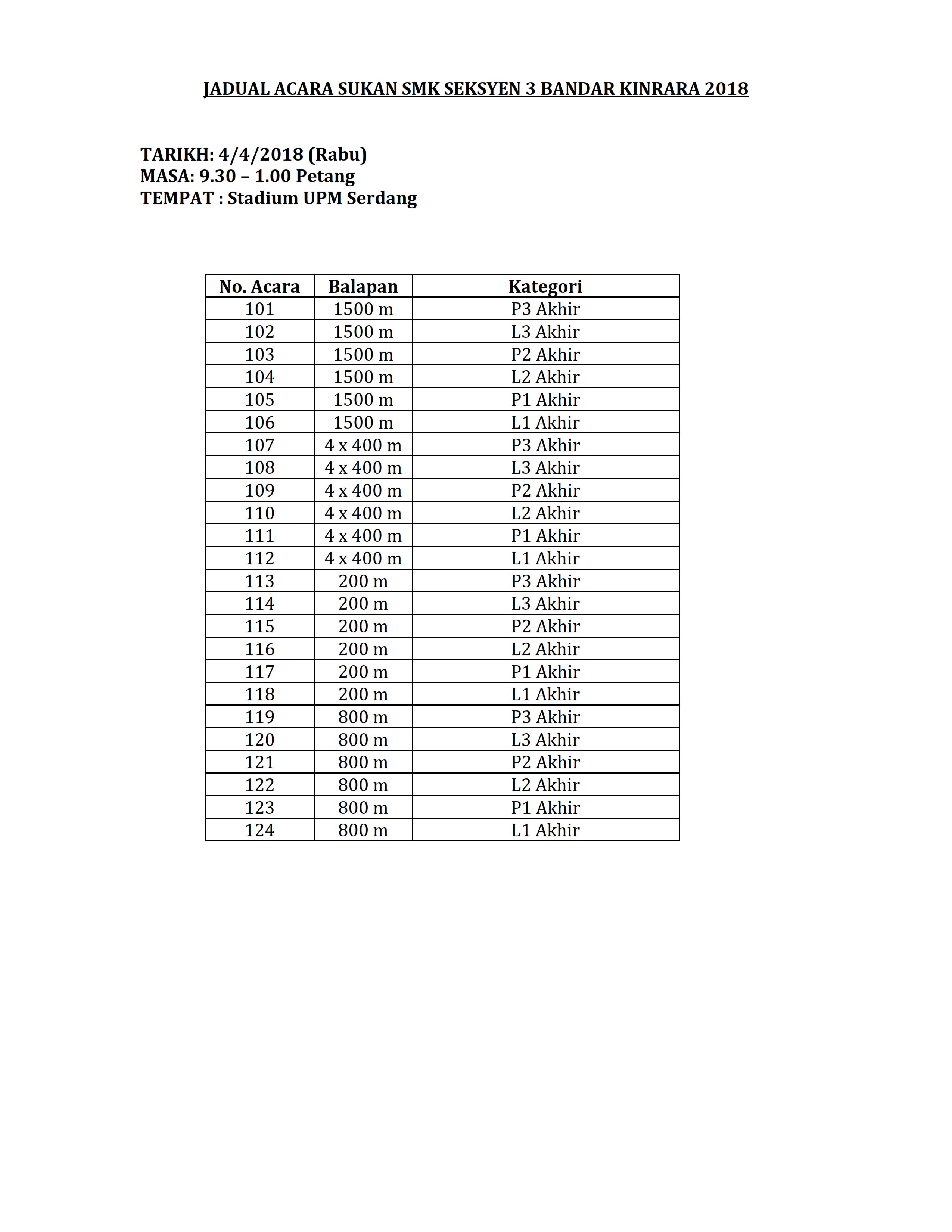 تويتر \ SMK Seksyen 3 على تويتر: "JADUAL ACARA SUKAN SMK SEKSYEN 3