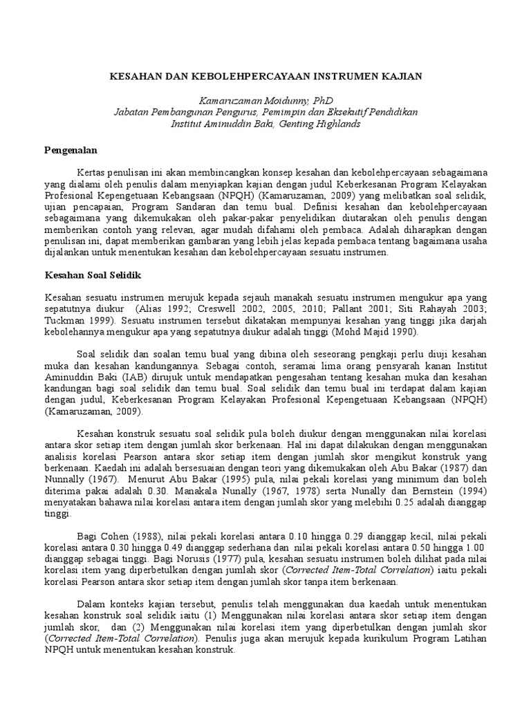 Format Penulisan Kesahan Dan Kebolehpercayaan Instrumen PDF