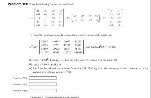 Solved Problem #3: Enter the following 3 matrices to Marib Chegg.com