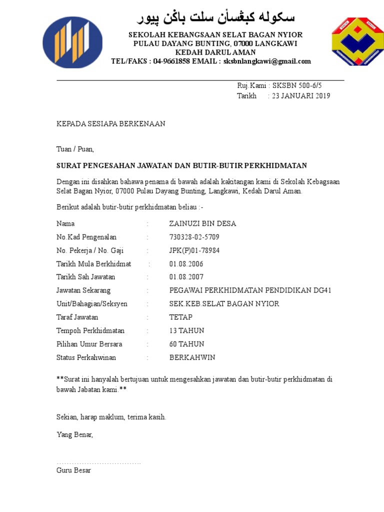 Surat Pengesahan Majikan Untuk Loan Rumah - letter.7saudara.com